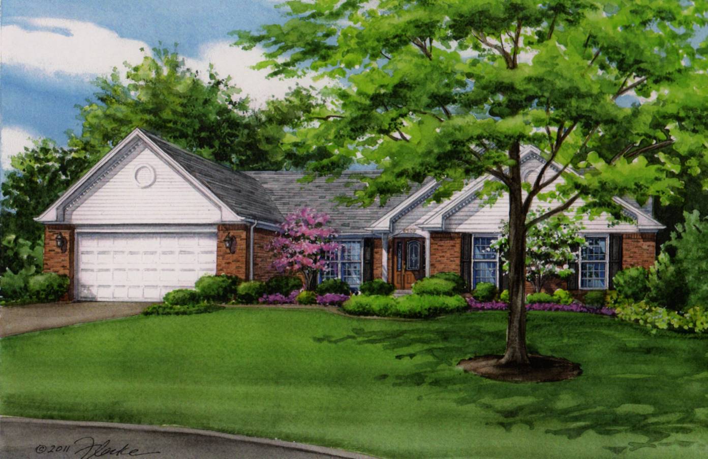 Completed on October 27th… a 12″x20″ Watercolor of a tastefully classic, traditional style 2 -story brick residence in a very nice suburban neighborhood in Virginia. The family has since moved to a new home, and the portrait was done as a keepsake remembrance of the happy years spent there. The portrait includes a very special personal touch – the small daughter mowing the grass with her toy lawnmower, something she loved to do….. how precious is that!